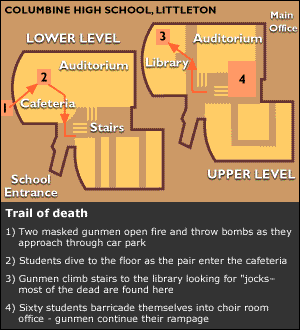 Just one day after the event, a senior who brought a knife to school to cut apples for his lunch got arrested, kicked into a juvenile detention center, and suspended. A couple days later, teachers sued a student for having a web site on Satanism, which included their names. The same thing happened to two students in Ohio who had a Goth web site. A school in Florida banned the presentation of a Woody Allen play, which ironically only made the students who worked so hard on it very angry about the arbitrary and censoring decision.